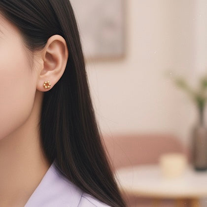 Эмнэлэгийн 316L маркийн дээд зэрэглэлийн ган төмрөн хийцтэй 18 каратын алтан бүрмэлтэй гоёмсог ээмэг. Харшил өгөх мэт хүний биед ямар нэгэн хорт нөлөө үзүүлэхгүй. Өнгөө 2-3 жил алдахгүй бөгөөд усанд норгож болно.