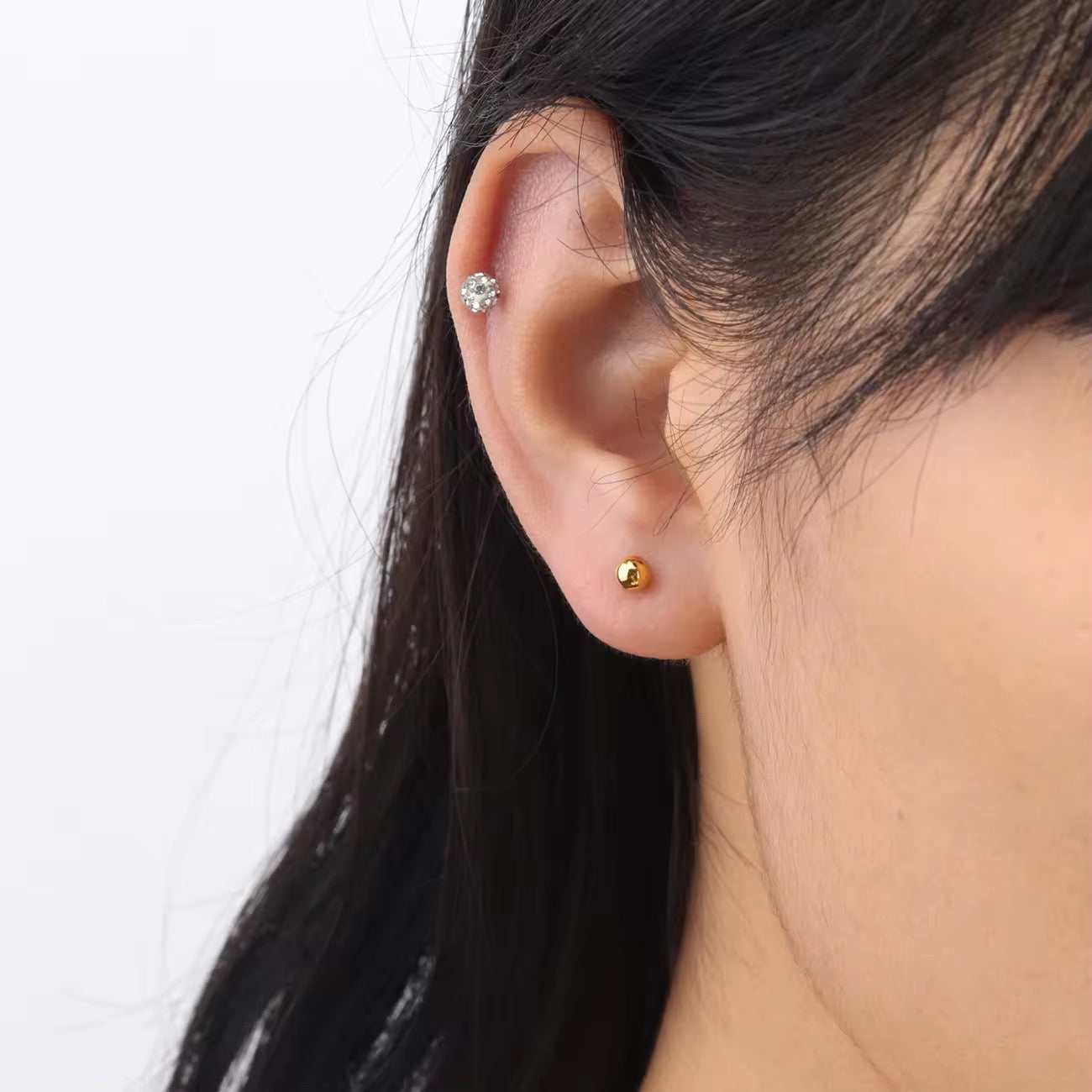 Эмнэлэгийн 316L маркийн дээд зэрэглэлийн ган төмрөн хийцтэй 18 каратын алтан бүрмэлтэй гоёмсог ээмэг. Харшил өгөх мэт хүний биед ямар нэгэн хорт нөлөө үзүүлэхгүй. Өнгөө 2-3 жил алдахгүй бөгөөд усанд норгож болно.