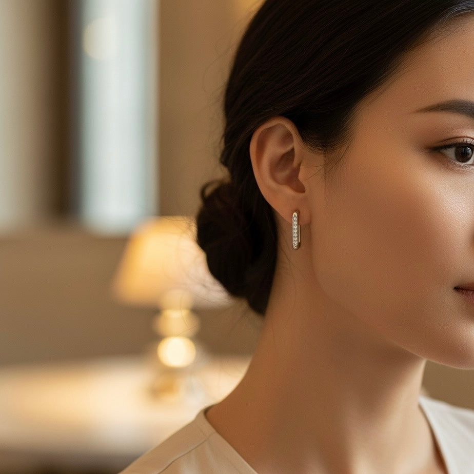 Эмнэлэгийн 316L маркийн дээд зэрэглэлийн ган төмрөн хийцтэй 18 каратын алтан бүрмэлтэй гоёмсог ээмэг. Харшил өгөх мэт хүний биед ямар нэгэн хорт нөлөө үзүүлэхгүй. Өнгөө 2-3 жил алдахгүй бөгөөд усанд норгож болно.